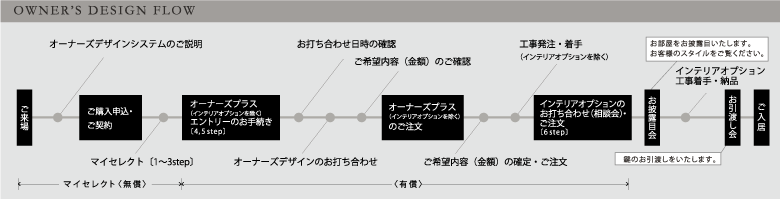 ご新居も、ほんの少し手を加えるだけで、より快適でより満足のいくものに変わります。そこで、「オーナーズデザイン」をご用意。あらかじめ設定させていただいたメニューの中から、ご希望の組み合わせをお選びいただけます。 ※「オーナーズデザインシステムガイド」より、ご希望のメニューをお選びいただきます。