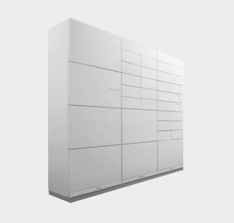 - 不在時でも荷物を受け取れる宅配ロッカーを設置。住戸内のインターホンやオートロック操作盤での着荷表示機能、非接触キーとの連動など、様々な機能を装備。