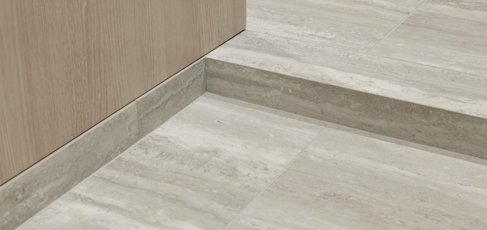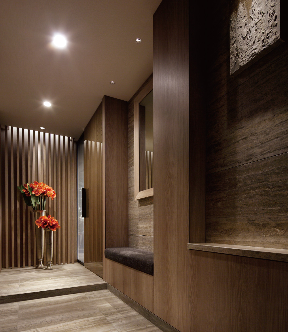 - 玄関や廊下、洗面化粧室・レストルームの床は風合い豊かで高品質な石目調磁器質タイル貼りとしています。