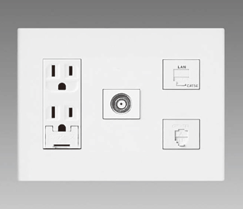 - テレビ用、電話用アウトレットやインターネット接続端子が一体化し、LANの配線にも便利です。