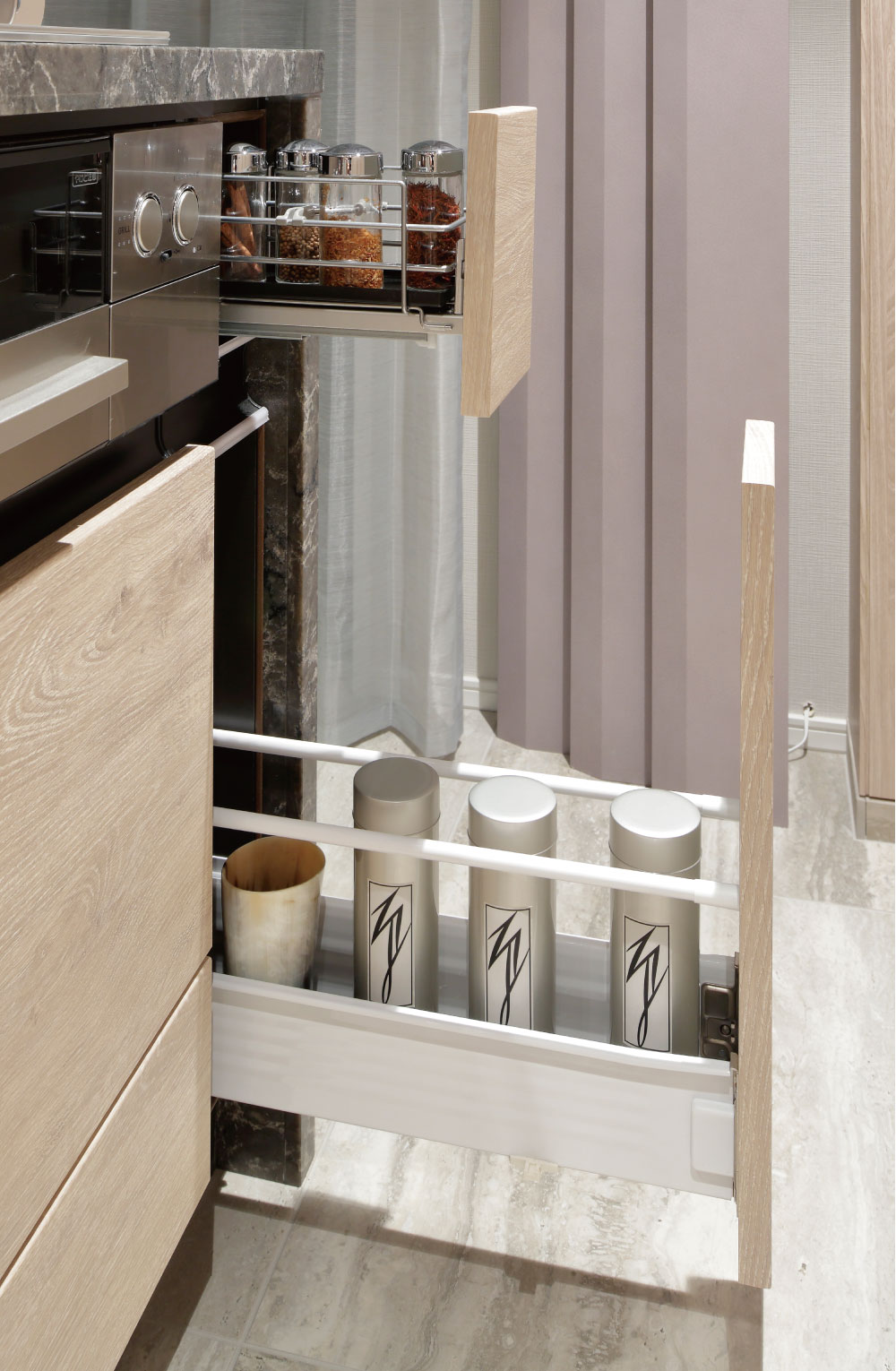 - 調味料を整然と収納することができ、キッチンスペースを有効に使えます。
