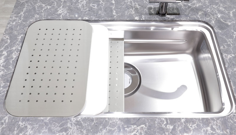 - 使いやすさを重視した3層構造の機能シンク。オプションアイテムを組み合わせ、カスタマイズできます。(水切りプレート2枚標準実装)※タイプによってサイズ・仕様が異なります。図面集をご確認ください。