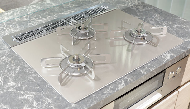 - 美しいデザインの中に先進の機能と安全性を実現しました。油汚れが簡単に拭き取れるので、キッチンが常に美しく清潔に保てます。ステンレス五徳を採用。※タイプによってサイズ・仕様が異なります。図面集・Qナビをご確認ください。