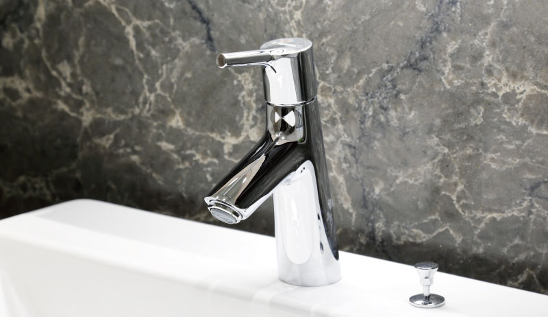 - ひとつのレバーで水量や温度の調節ができるデザイン性が高いドイツ・ハンスグローエ社製水栓です。
