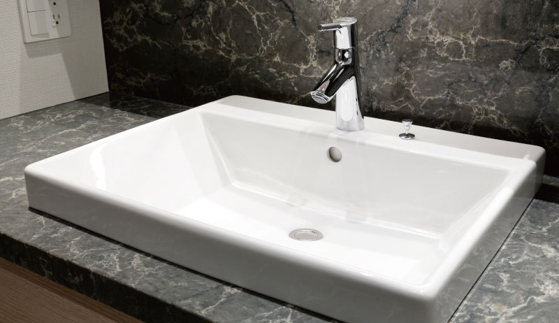 - デザイン性の高さとお手入れのしやすさを兼ね備えたハーフベッセルボウルを採用。シーザーストーンのカウンタートップと共に高級感を醸し出します。※シーザーストーンは色柄が異なります。