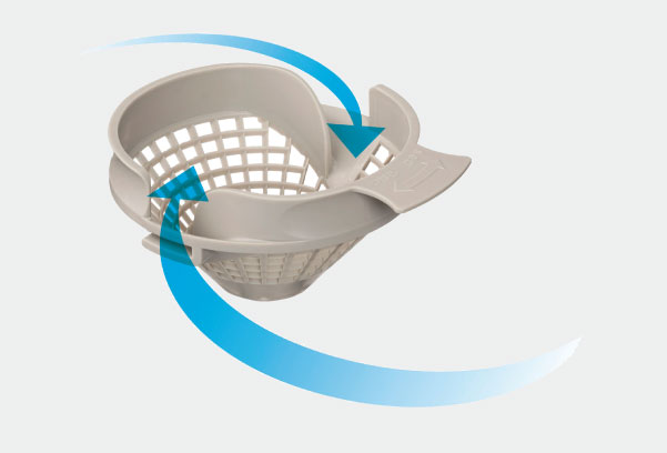 - シャワーなどの排水時に渦を起こして、髪の毛やゴミをヘアキャッチャーの中央にパッとまとめます。 ゴミを捨てやすく、お掃除が簡単な排水口です。