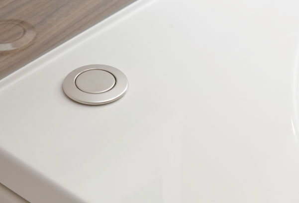 - 浴槽に残ったお湯がワンプッシュで簡単に排水できます。チェーンが無いので、見た目もすっきりしています。