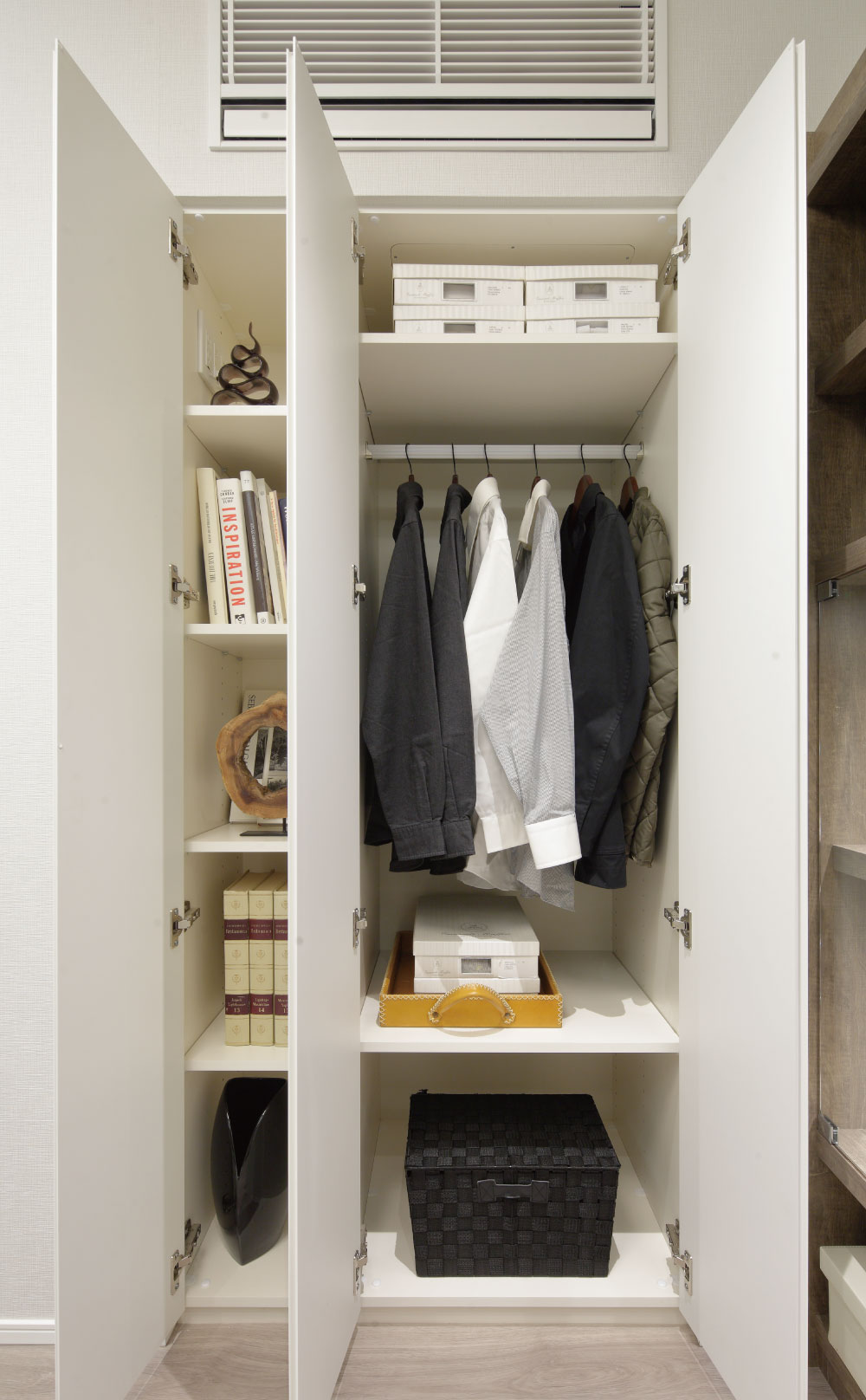 - 棚を複数設けることで、細々した物もキッチリ収められる物入を専有部各所に設置。また洋室には、収納力を高めたシステムユニット収納を設置しています。※一部住戸のみ。※タイプにより形状が異なります。