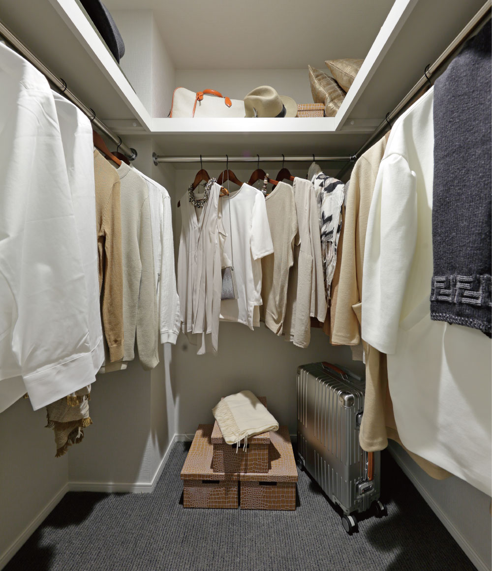 - 室内スペースをすっきり、スタイリッシュに使えるウォークインクローゼット。大容量の空間に、衣類をはじめ様々なアイテムをたっぷり収納することが可能です。※タイプにより形状が異なります。