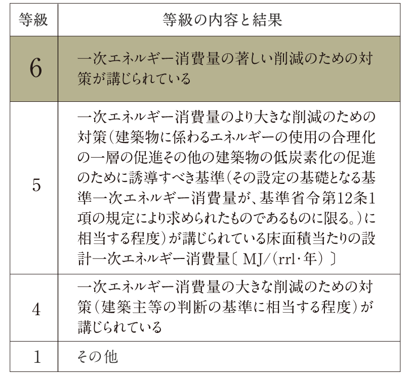 - 設備の性能や省エネを総合的に評価する一次エネルギー消費量等級で「6」を取得。