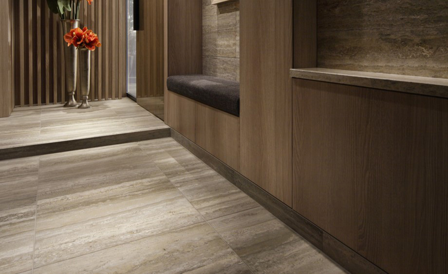 - リビング・ダイニング・キッチンの床は風合い豊かな600角磁器質タイル貼りを標準でご用意。玄関・廊下から統一感のある雰囲気を演出します。※色柄が異なります。