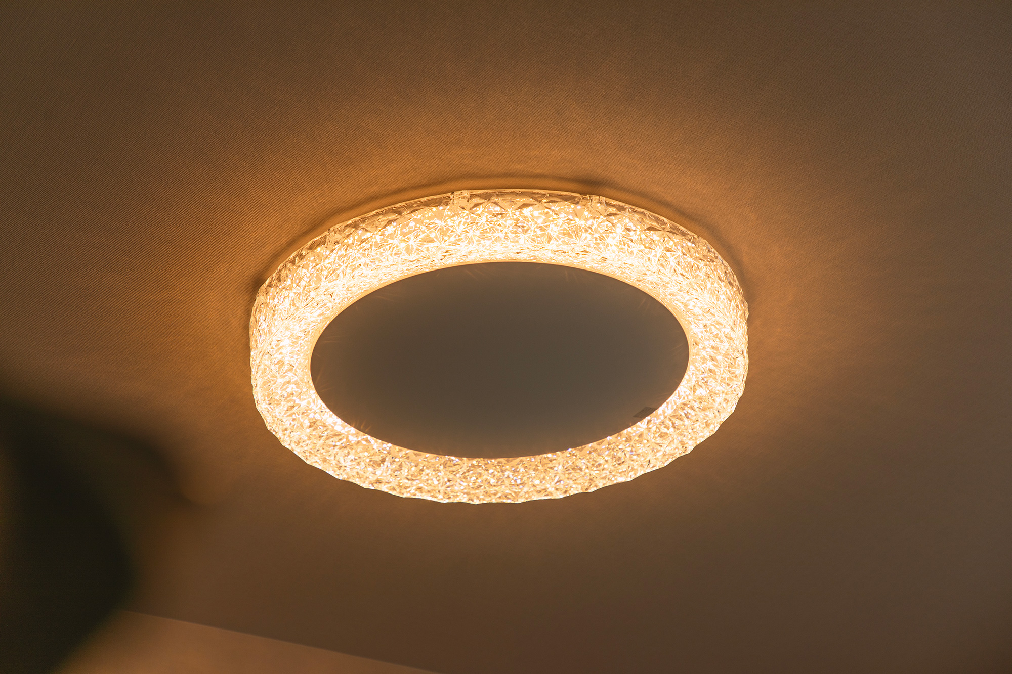 お部屋のポイントにもなる、シンプルながらラグジュアリー感が漂うオーデリックの照明。