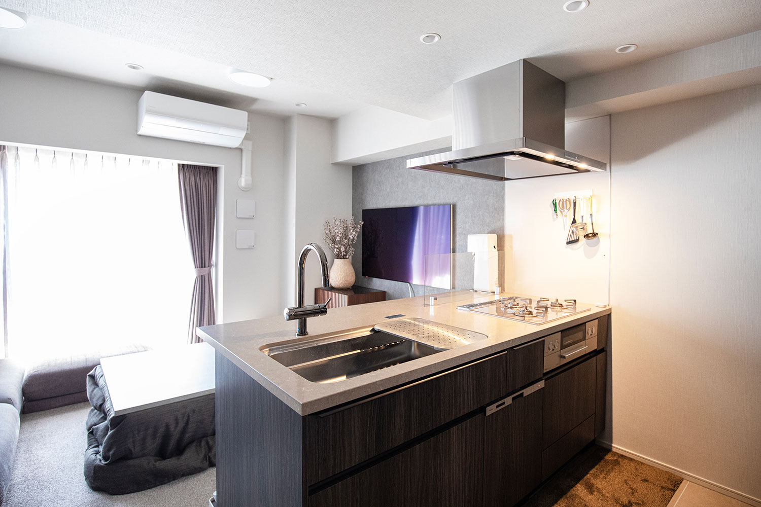 カウンターの天板を大きく広げ利便性の高いキッチン空間に