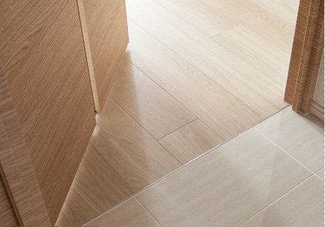 - 玄関床材は重厚で高級感あふれるタイル仕様。気品に満ちた空間を演出し、住まう方、訪れる方を迎え入れます。※廊下はフローリングが標準となります。