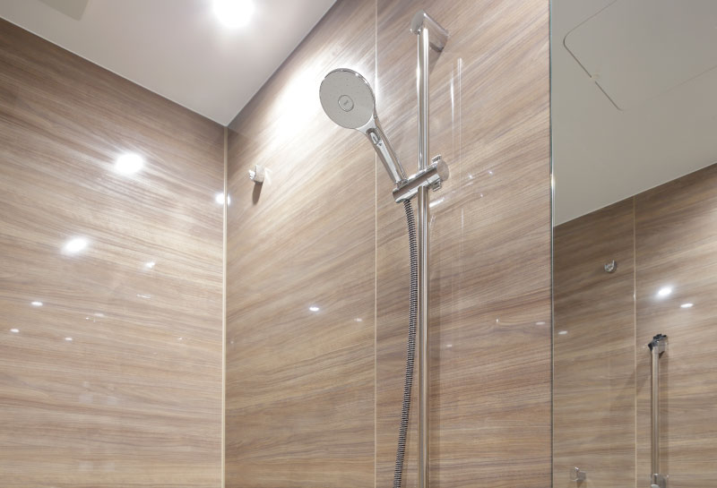 - シャワーの高さが自在に調整できるので身長に合わせて心地よく、お使いいただけます。