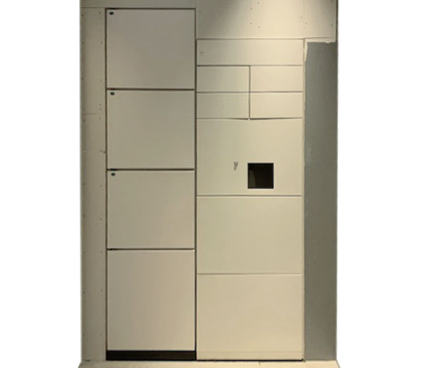 - 不在時でも荷物を受け取れる宅配ロッカーを設置。住戸内のインターホンやオートロック操作盤での着荷表示機能、非接触キーとの連動など、様々な機能を装備。