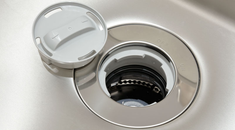 - 生ゴミを排水口で細かく粉砕・分解して水と一緒に流すので、いつでも簡単に処理が可能で衛生的です。※一部粉砕できないものがあります。