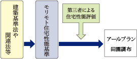 モリモトの社内基準とする住宅性能は、建築基準法や関連法、消防法、日本建築学会標準仕様書等、関連する法規・基準をクリアし、高い安全性や耐久性の追求に努めております。さらに、住宅性能表示制度にも対応することにより、全くの第三者機関によって客観的かつ公平な審査が行われ、その信頼性を確かなものにするものです。