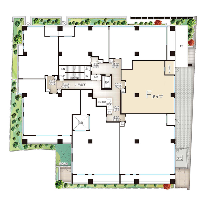 - 玄関廊下/600角タイル貼り・廊下壁両面突板パネル