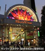 JR「蒲田」駅周辺には、広大な商業ゾーンが形成されています。駅をはさんで東館と西館がある「グランデュオ」や「東急プラザ」などの大型商業施設からアーケード商店街の「サンライズカマタ」などの商店街が集積しており、この街に暮らすことの大きな魅力です。
