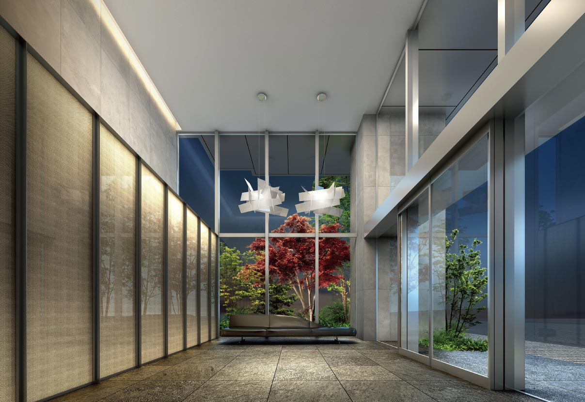 開放的な角地にある美しく整った敷地を有効に活用し、ゆとりあるエントランスホールと植栽スペースを確保。安全に配慮して、人と車、自転車の出入口を分離。敷地内に駐輪場と24時間対応のゴミ置場を設置し、快適な都市生活をサポートします。