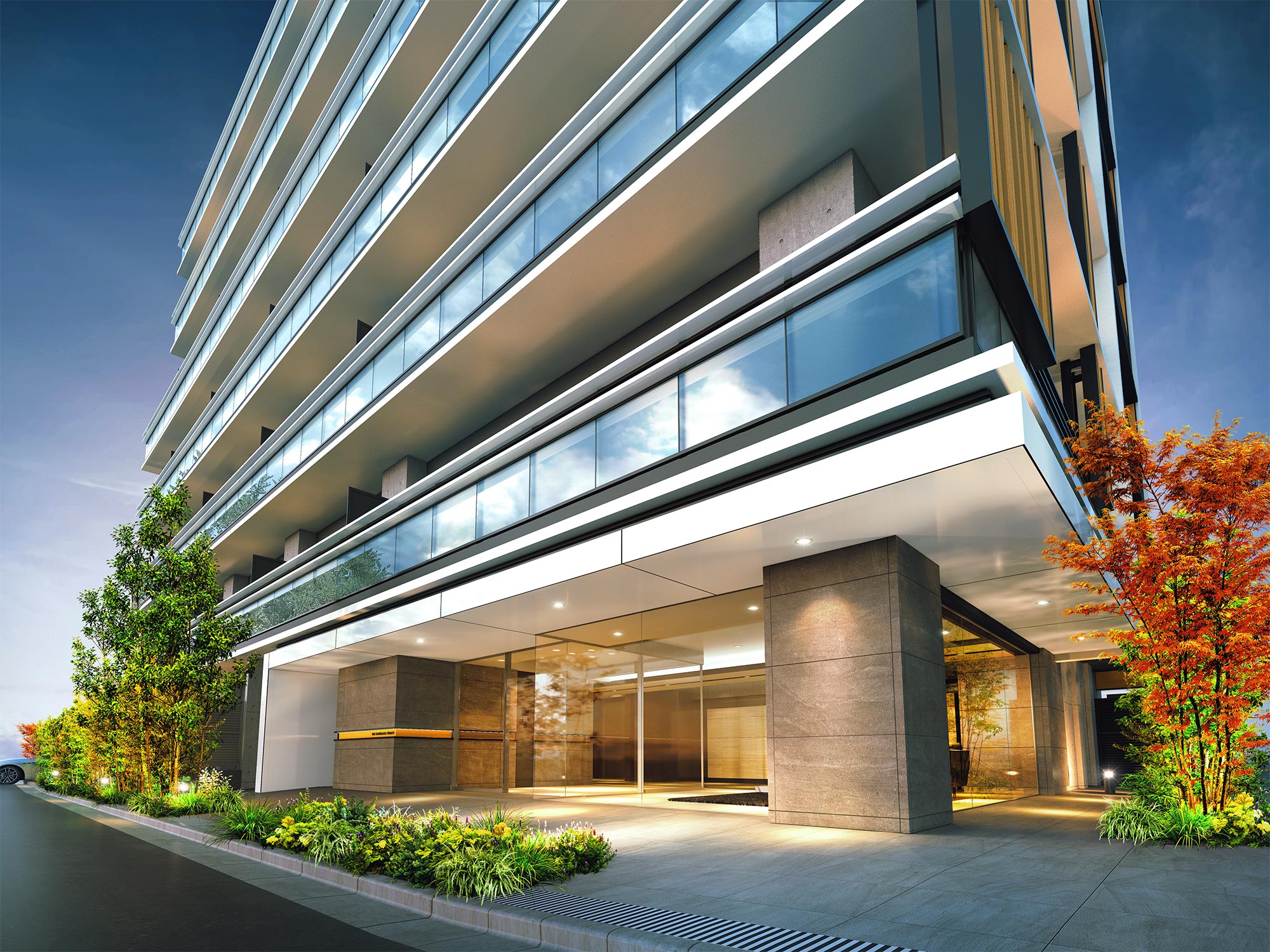 - 掲載の外観・エントランス完成予想CGは、計画段階の図面を基に描き起こしたもので、形状・色等は実際とは異なり、今後施工上の理由等により計画に変更が生じる場合があります。周辺建物、電柱、フェンス、雨樋、軒樋、エアコン室外機、給湯器、パットマウント等設備機器は表現を省略してます。なお、植栽は実際に植樹する樹形、枝ぶり、葉や色合いとは異なる場合があり、特定の季節の状況、入居時期を想定したものではありません。