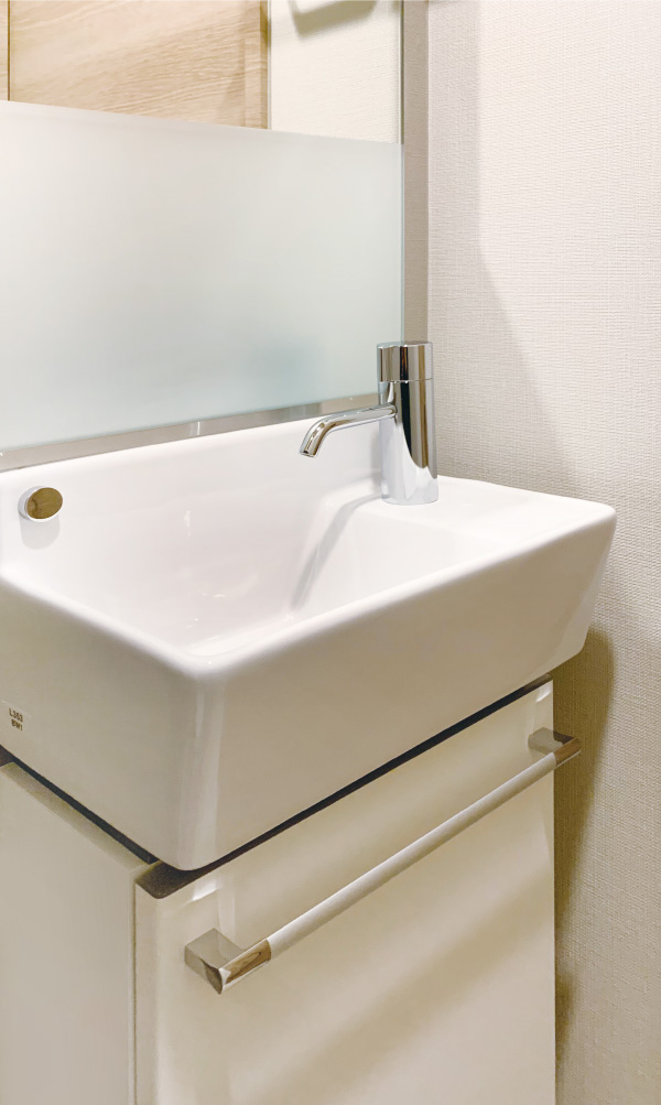 - トイレにはスタイリッシュな手洗いカウンターを標準装備。