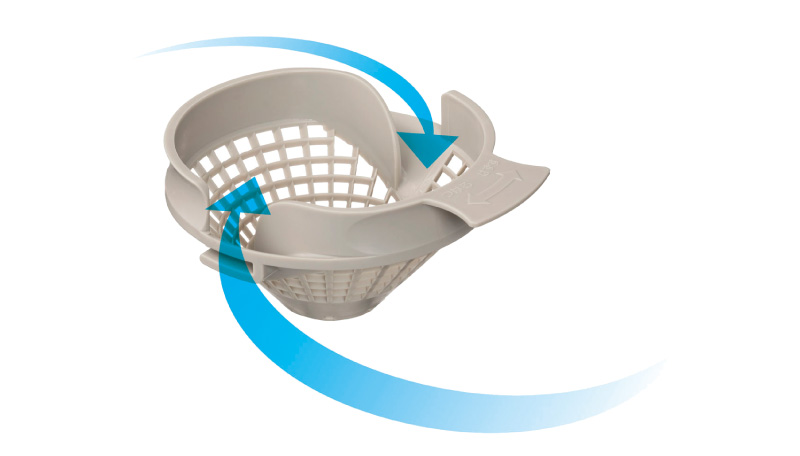 - シャワーなどの排水時に渦を起こして、髪の毛やゴミをヘアキャッチャーの中央にパッとまとめます。ゴミを捨てやすく、お掃除が簡単な排水口です。