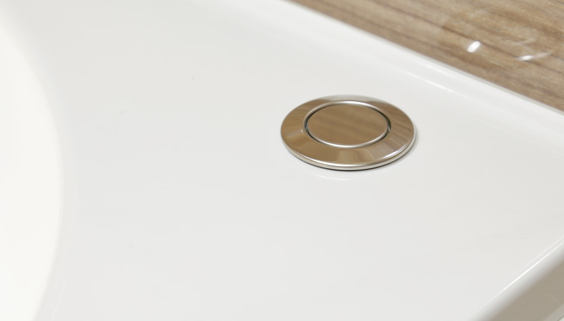 - 浴槽に残ったお湯がワンプッシュで簡単に排水できます。チェーンが無いので、見た目にもすっきりしています。