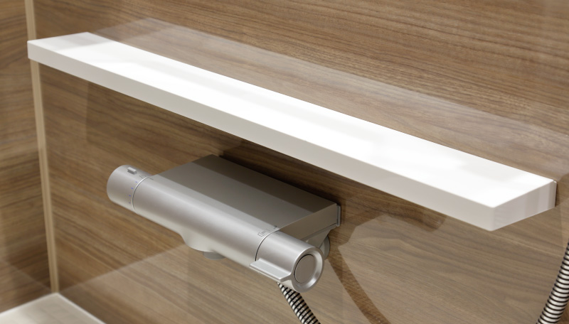 - 浴槽の上縁を極限まで広げて、湯面の広がりと入浴時の開放感が感じられ、角の少ないやわらかな曲線で快適な入浴姿勢ができる浴槽です。