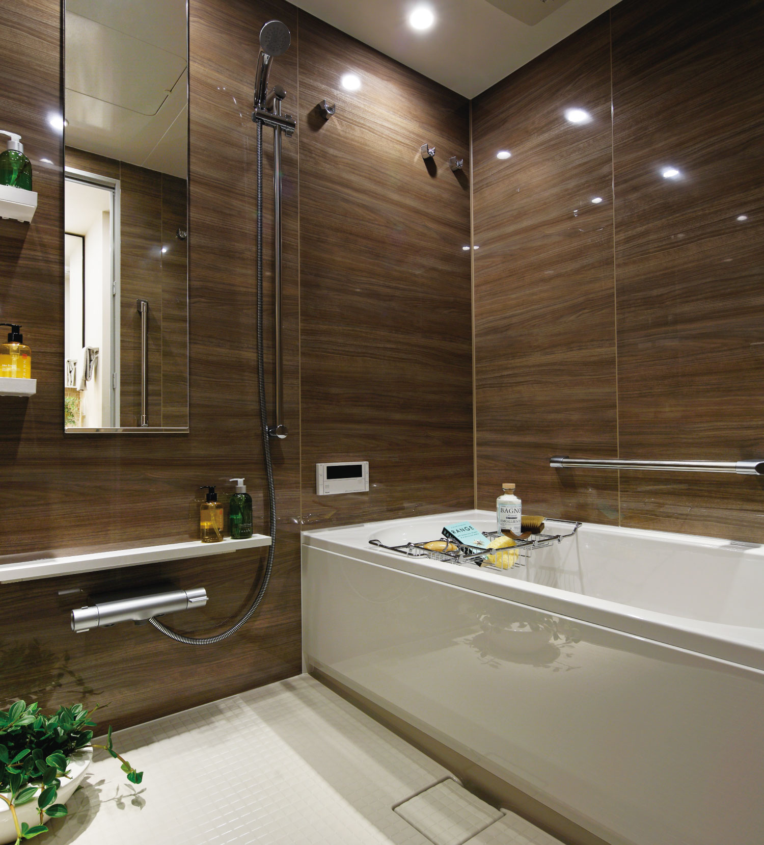 - お湯張りから湯量・湯温調整、追い焚きまで簡単なボタン操作で行えるフルオートバスを採用しています。