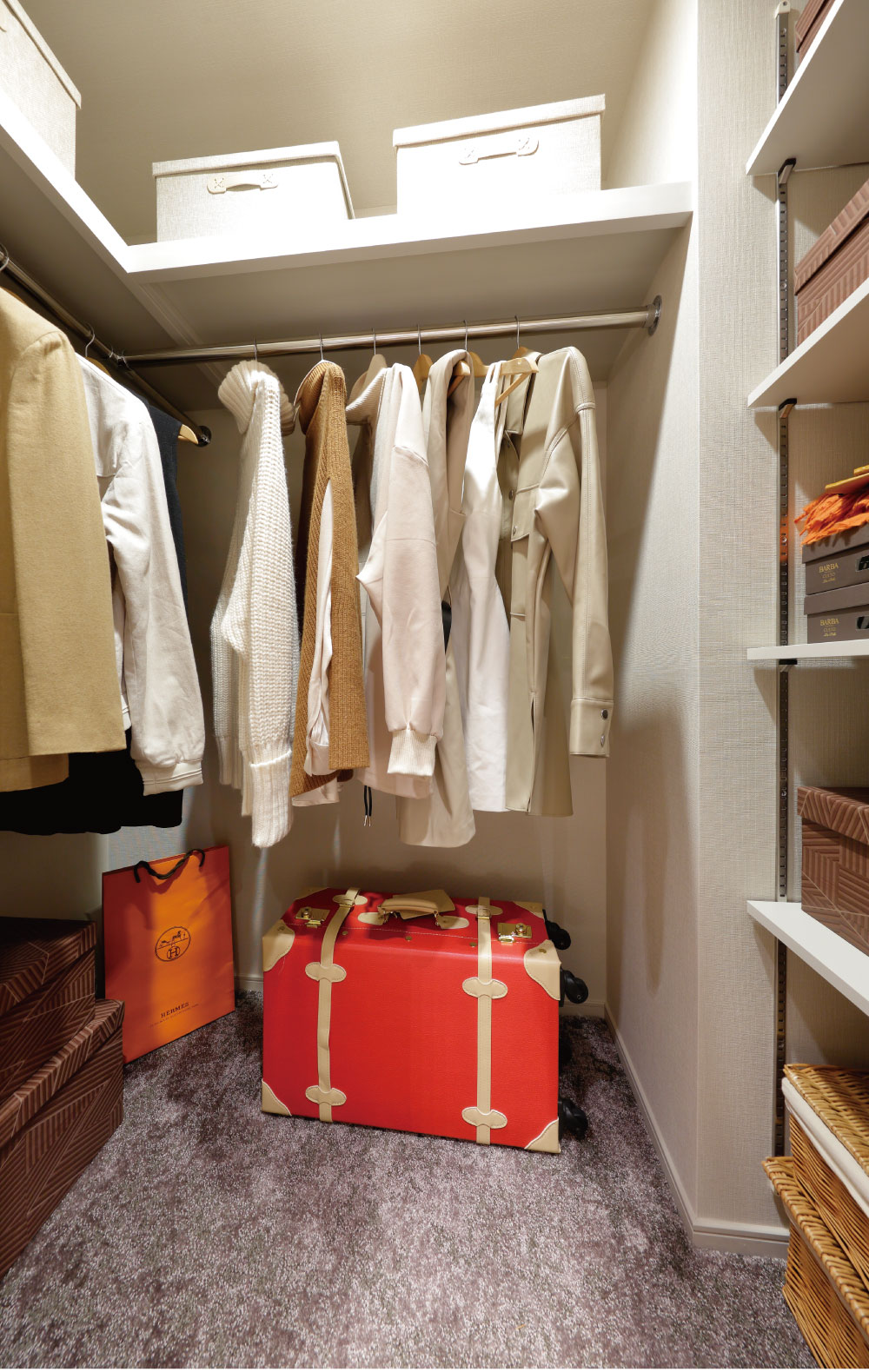 - 室内スペースをすっきり、スタイリッシュに使えるウォークインクローゼット。大容量の空間に、衣類をはじめ様々なアイテムをたっぷり収納することが可能です。※タイプにより形状が異なります。※一部のタイプのみ。