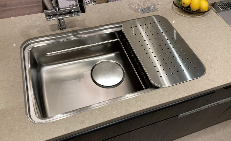 - 水はね音を低減する静音シンクを採用。使いやすさを重視した3層構造の多機能シンク。オプションアイテムを組み合わせ、カスタマイズできます。※水切りプレート2枚のみ標準実装。