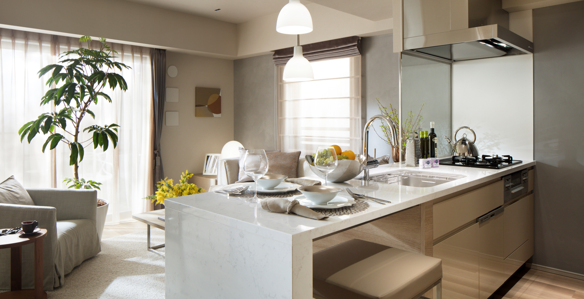 - 掲載の室内写真はコンセプトルームを撮影したもので、実際の仕様とは異なります。また、一部オプション仕様(有料)が含まれている他、家具・備品等に関しては配置例を示したもので販売価格には含まれません。また、施工の都合により、実際とは異なる場合がございます。設備・仕様はタイプにより異なります。