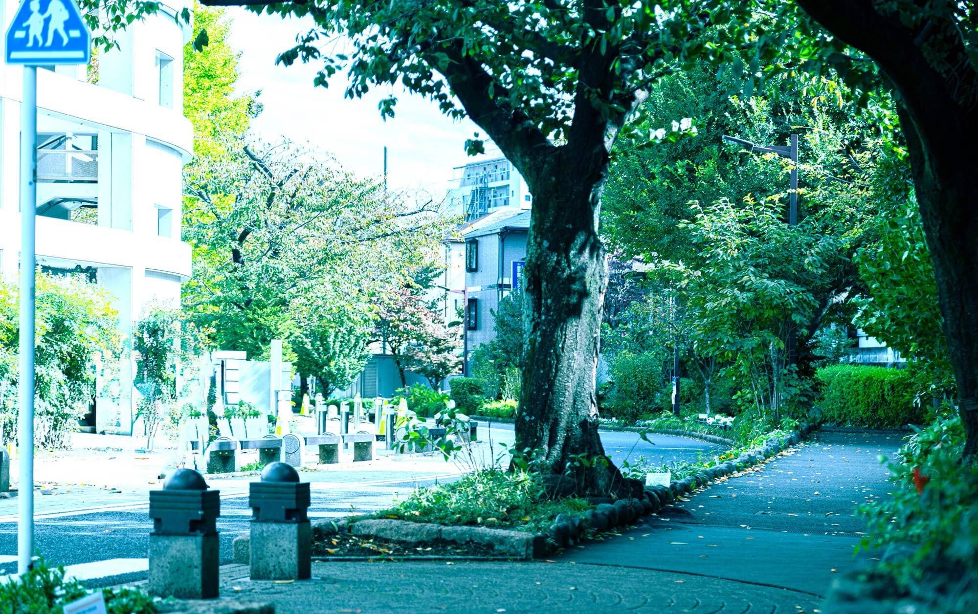 駅周辺の賑わいから少し奥まると、そこには静けさに包まれる邸宅地が広がっています。都市の華やぎがすぐそばにあるとは信じがたいほどの、静穏な住環境と烏山川緑道の自然が心豊かな暮らしを育んでいます。