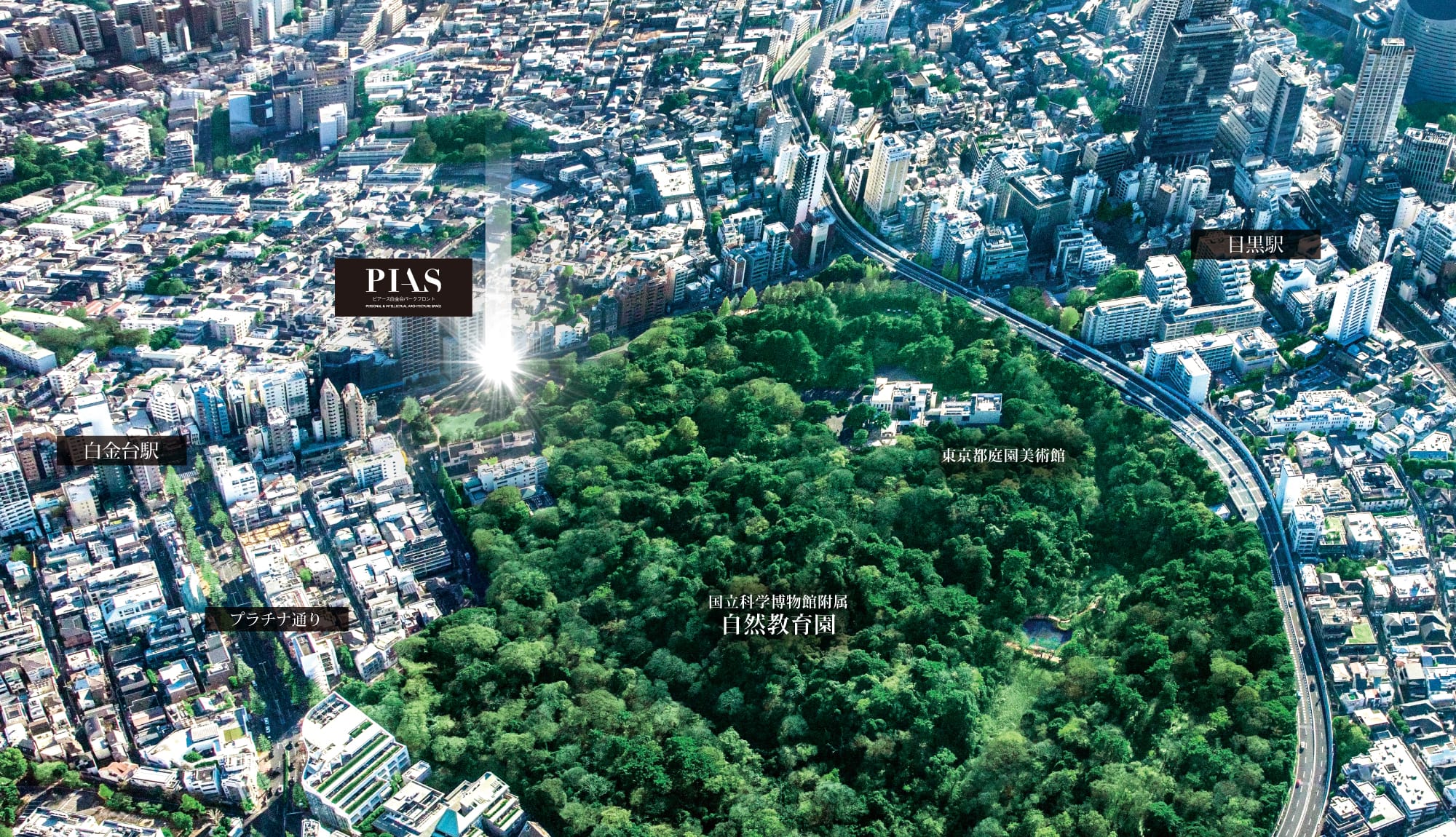 眼前に「自然教育園」の杜が広がると共に、南西側には大崎・品川方面への眺望が開ける立地です。
