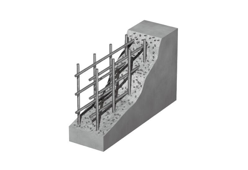 - 工場で特殊溶接により継ぎ目を閉じた形へ加工した帯筋です。コンクリートを拘束する能力が高く、一般的な帯筋よりも大地震時の粘り強さに優れています。(柱と梁の接合部分除く)